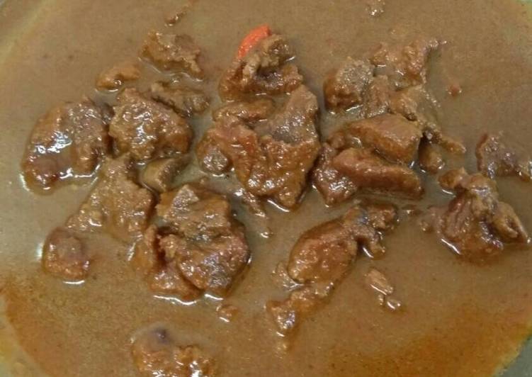 - Rebus smpai daging empuk. Jika dirasa kurang empuk tambahkan air lagi dan didihkan kembali hingga empuk.